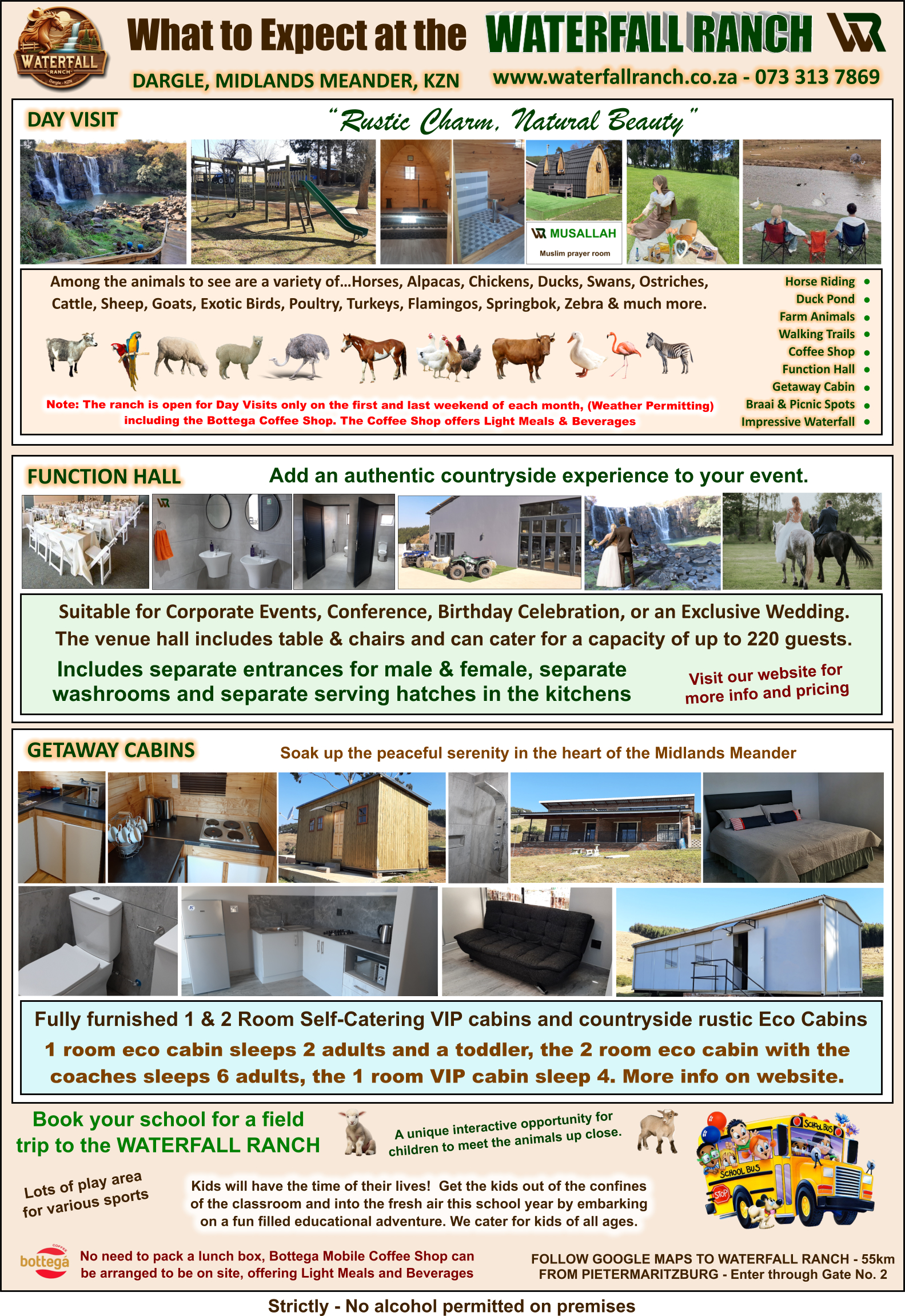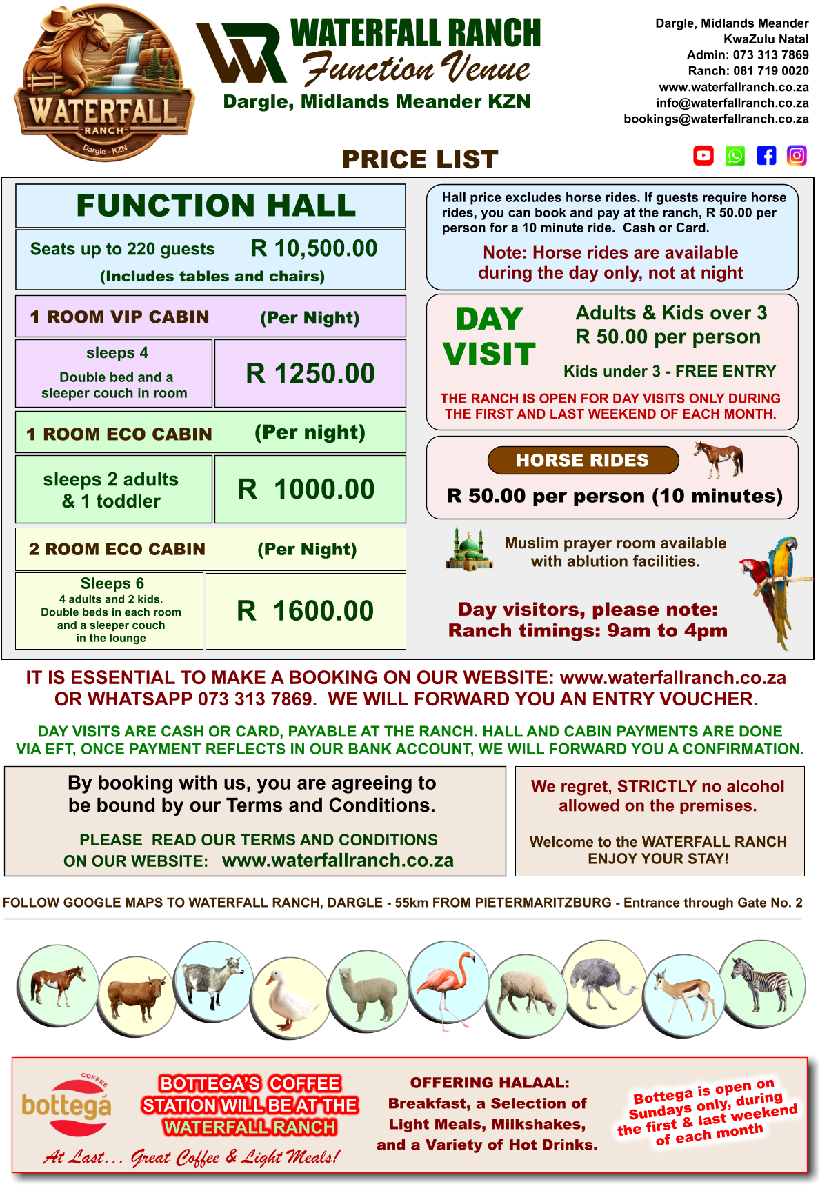 Please Note: Booking is essential for Day Visits. Book on-line via the booking form HERE or book via WhatsApp on 073 313 7869